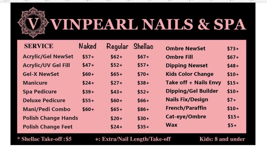 Have questions about our services or policies? Our FAQ section provides answers to common inquiries to help you make the most of your experience at Vinpearl Nails & Spa Inc. If you need further assistance, feel free to reach out to our team!